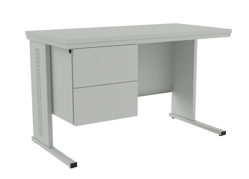 Metalowe Biurko lekarskie typ Bim 212 S. Metalowy Kontenerek biurka Bim 212 s zbudowany z dwóch metalowych szuflad dostosowanych do formatów na karty chorób pacjentów. Szuflady posiadają zamek centralny zamykany na zamek kluczowy. Do zamków dołączone są dwa klucze. Blat biurka wykonany z płyty pokrytej melaminą. Daje to możliwość dezynfekcji biurka. Kontenerek standardowo montowany jest po lewej stronie, istnieje możliwość umieszczenia kontenera po prawej stronie -  należy  to zgłosić przy składaniu zamówienia.