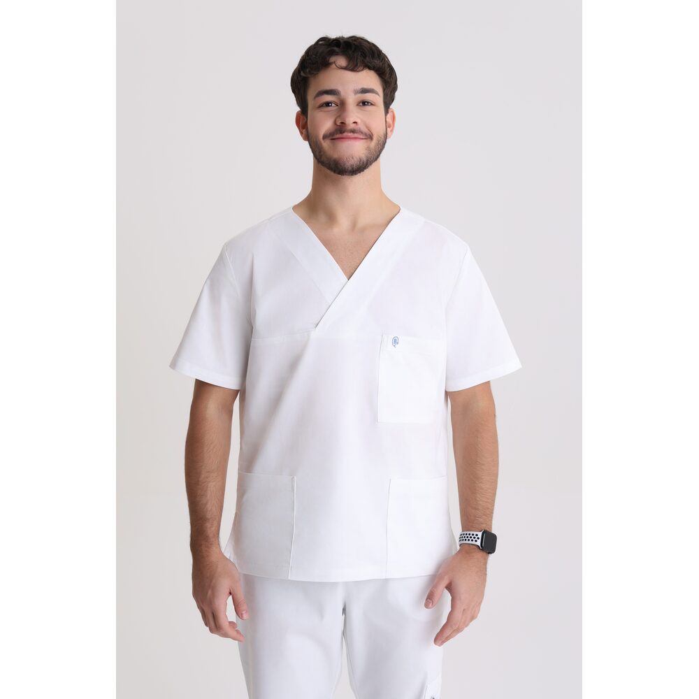 Bluza medyczna męska stworzona z myślą o wygodzie i funkcjonalności w codziennej pracy. Klasyczny, prosty krój gwarantuje komfort noszenia przez cały dzień, a przemyślany układ kieszeni i konstrukcyjnych detali zapewnia praktyczność oraz estetykę. Uszyta z miękkiej, przewiewnej tkaniny zawierającej 98% bawełny i 2% elastanu, dzięki czemu jest lekko elastyczna, dobrze dopasowuje się do sylwetki i umożliwia swobodę ruchów, nawet przy bardziej wymagających zadaniach.