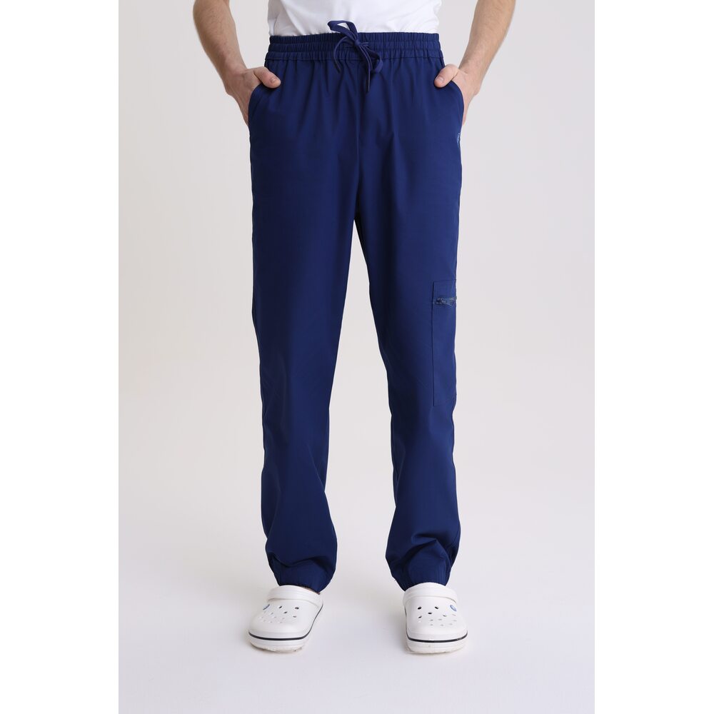 Nowoczesne męskie spodnie medyczne typu jogger, zaprojektowane z myślą o maksymalnej wygodzie i dynamicznym trybie pracy. Spodnie uszyte zostały z wysokiej jakości, oddychającego materiału: 98% bawełna, 2% elastan – tkanina jest miękka, przyjemna w dotyku i lekko elastyczna, dzięki czemu zapewnia komfort i swobodę ruchów przez cały dzień pracy. Delikatnie zwężany krój oraz gumki przy kostkach zapewniają dobre dopasowanie i nowoczesny wygląd, bez ograniczania swobody ruchów. Model wyposażony jest w praktyczne kieszenie cargo z przodu i z tyłu, które oferują dużą pojemność i szybki dostęp do niezbędnych akcesoriów. Dodatkowa kieszeń na udzie zapinana na suwak zwiększa funkcjonalność i bezpieczeństwo przechowywanych drobiazgów, takich jak telefon czy klucze. Połączenie sportowego charakteru z medyczną funkcjonalnością sprawia, że spodnie doskonale sprawdzają się podczas intensywnego dnia pracy, zapewniając komfort i profesjonalny wygląd.
