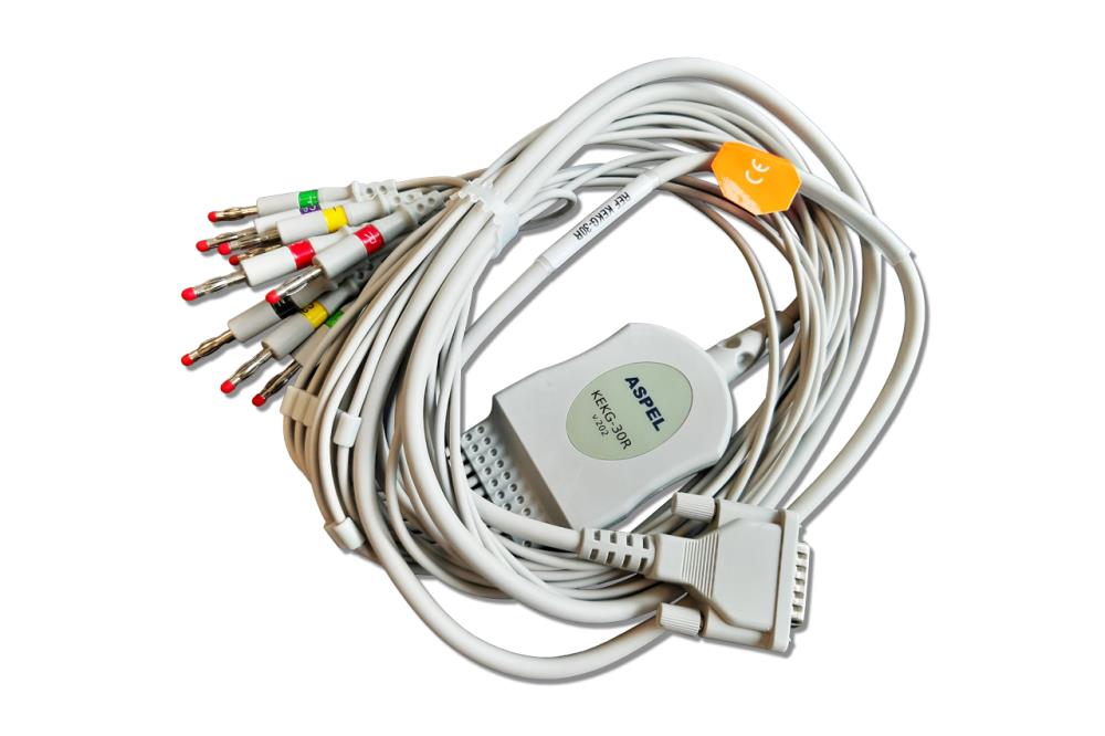 Kabel do aparatów EKG ASPEL KEKG-30R v.202 - przeznaczony jest do współpracy z elektrokardiografami Aspel, które umożliwiają wykonywanie diagnostycznych badań EKG u dorosłych i pediatrycznych pacjentów we wszystkich placówkach służby zdrowia przez przeszkolony personel. Kabel ASPEL KEKG-30R ma za zadanie przekazywanie sygnałów elektrycznych obrazujących pracę serca z organizmu człowieka poprzez elektrody umieszczone na skórze pacjenta do elektrokardiografu.
